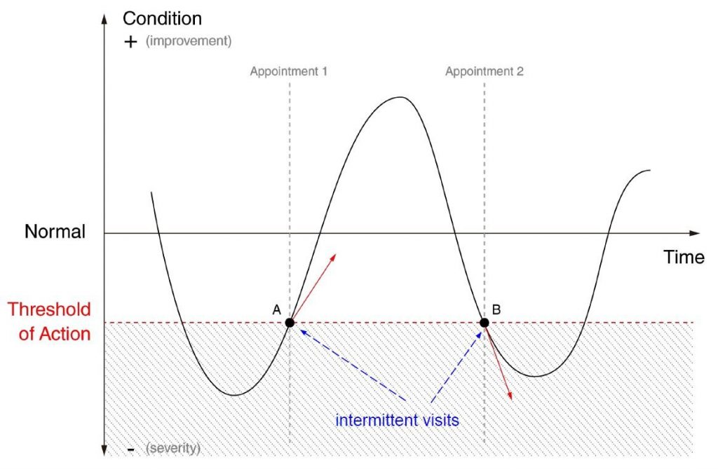 Furthermore, the current way of practice lacks a holistic & consistent understanding of patient’s conditions and actionable information between intermittent clinical visits.